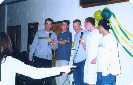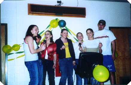 We held our first Karaoke Coffee House on April 5, 2001. We cannot take all the credit for the night. We had help from three other organizations within our school. The National Honor Society, run by Mrs. Carr, the Key Club, run by Ms. Tarnowski, and the Class of 2004, run by Mr. Curtis, all took part in the event. We had approximately 75 to 80 people participate. It was a lot of fun and we hope everyone enjoyed themselves. Below are some of the highlights of the night, thanks to Miss Ambrosio.
