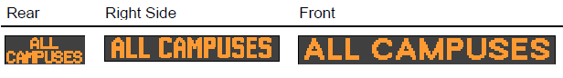 DESTINATION SIGN CHANGES/PROBLEMS led the "ALL CAMPUSES" bus to display