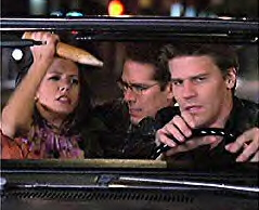 Angel is a vampire with a conscience who lives in LA and fights vampires and other demons for clients of Angel Investigations. He came to LA after a bad breakup with Buffy. He rids the city of the bad guys. He worked with Cordy, Wesley, and Gunn, but with the whole Darla thing, he fired them. After sleeping with Darla, he had an epiphany and went crawling back to his old friends and now works for Wesley instead of vice versa. Angel is played by David Boreanaz. |