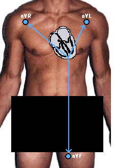 These three leads are referred to as aVR (right arm), aVL