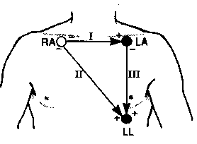 arm and left leg electrodes, the left leg again being positive.