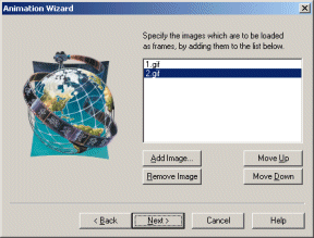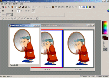 Insert both images into this area by clicking on "Add Image" button. Make sure that you start at the last frame (2.gif) and then hold down the Shift key as you click on the first frame (1.gif). This will now appear in numerical order in the list area (see below). These are entered in one order but will appear in the opposite order.