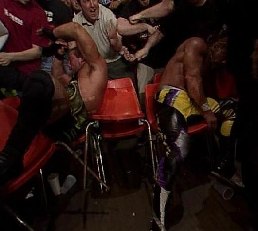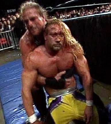 I own none of these pictures. Screencaps. Whatever you want to call them. I could think of a few other names... Most of them would have the police knocking on my door. These are all from ECW Hardcore Heaven 99. I am making no money out of this, I'm just showing people *why* this is probably the greatest match ever. Oh, and you should buy it. ...Legally, you damn hippies!