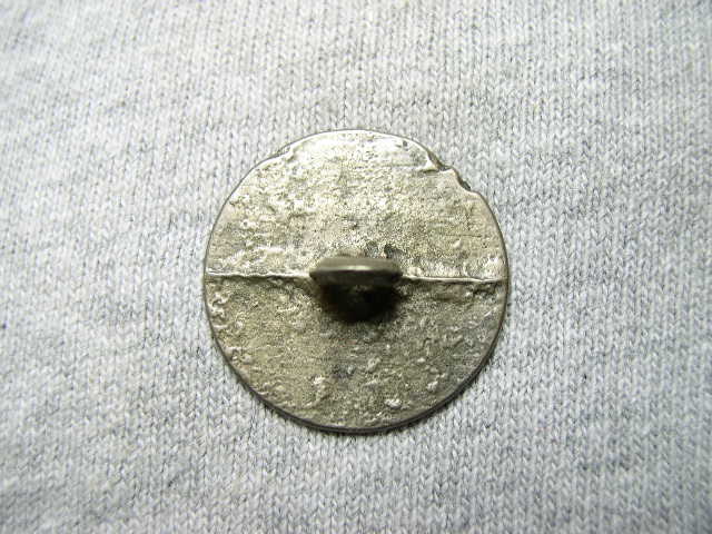Beautiful & super crude cast pewter non dug 18th century coat button. The front has a simple but excellent centered grometric design surrounded by sun rays. The reverse has crudeness galor and a straight shank. Measures 24 mm in diameter. $45