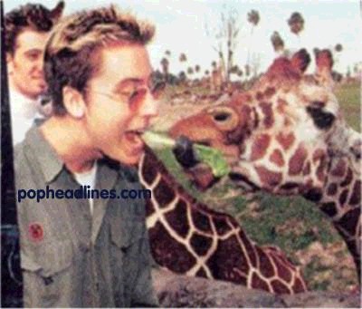 IT LOOKS LIKE THE GIRAFFE IS FEEDING LANCE!!
