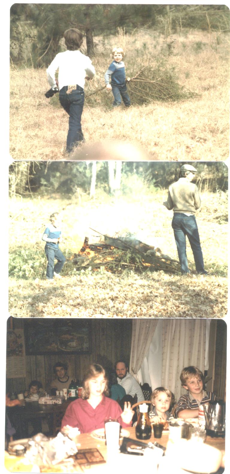 Here's a good photo of Ragan carrying his own weight, literaly. We always had good times burning fires down there, but the best time was when dinner time came. There was always, and I mean always, enough food for everyone and plenty for leftovers.