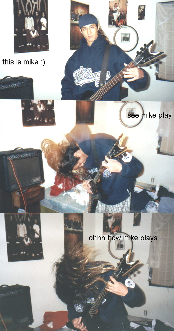 Mike also plays gutar in a band. :) he rocks i might add. we are currently in Drawing 2 together... he draws stuff like mushrooms and pot leaves, i draw other ppl.
