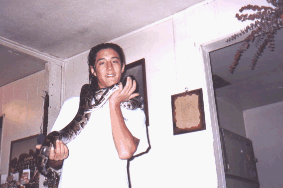 this is Mike playing with his snake. I'v known mike about 2 years and hes a pritty cool guy. His girlfriend is pregnant with his first child. I beleve that there getting married here in like 2 months. Him and his girlfriend not him and the snake. *mutters* perverts.