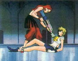 Wishing to become a high magician like Kaori, she works in the Mugen school in the phylosophy branch. She sends the students under her care to the woods to practise judo (Haruka being there), and eyes Serena and pals in the class and kicks them out. Later, she sends some students outside and posesses them with the Buster power, but Rei and Lita discover her plans and attack her. Mars's power only makes her imitate Medusa's hairdew, but eyeing the smoke in the air, the rest of the gang arrives and kills her.