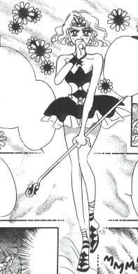 Her mundane name was Mimi Haniu. She used this name in episode 113 to try to enter a talent contest to win the chance of participating in a movie with a pop star, and even started to become Mina Aino's friend. She was the nly witch that also wanted to become a friend of one of the senshi. She liked to chase handsome male superstars just like any other nutty fan and bake pastries for them, she was very good as a cook, but never had a chance to show Souichi Tomoe (posessed by the Germatoid demon) her pastries.