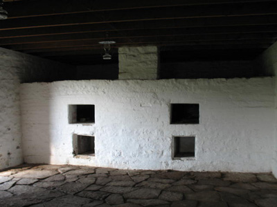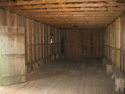 This is an interior photo of one of the barracks showing the fireplace used for warmth during the winter months.