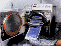 O Profissional ou o Auxiliar com as mãos enluvadas, deve colocar todo o instrumental utilizado em um recipiente contendo glutaraldeído a 2% ou hipoclorito de sódio a 1%, onde devem permanecer no mínimo por 30 minutos. Após este tempo, eles serão lavados para serem novamente esterelizados.