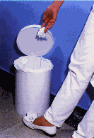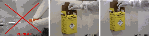 Os instrumentos cortantes a serem descartados (agulhas de anestesia, lâminas de bistuti, agulhas de sutura) deverão ser colocadas em um recipiente de paredes duras disponíveis no mercado (fig.20) ou recipientes de plástico com boca pequena contendo hipoclorito de sódio a 1%.