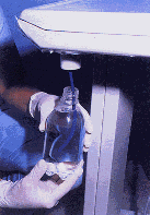 a Para o reservatório do sistema flush, acrescente 25 ml de hipoclorito de sódio a 1% para cada 500 ml de água filtrada.