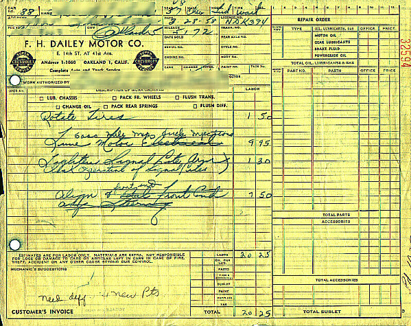 The original owner saved every single service receipt for the car since new; hundreds of receipts fill two three-inch binders. Below are a few samples.
