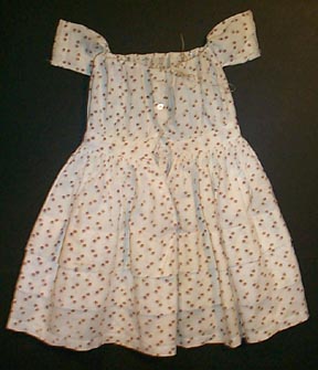 This charming 1840-60 childs white calico dress is entirely handsewn with the tiniest of stitches.