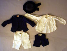 Label: Cloth labels in jacket and shirt, and stamped on vest buckle reads "Swears and Wells, London" Stamped in gold in hat reads "To Her Majesty