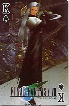 Sephiroth:As a soldier of long-standing service to Shinra, this figure has established a solid reputation for his fighting prowess. His past is sealed, contained only in top secret Shinra files. Among the elite Shinra soldiers, he is one of the best. The long sword he uses is a special weapon that is beyond the control of anyone other than himself. Cloud became a soldier with a dream of becoming like Sephiroth. His look of quiet menace and loose, but coiled readiness for action testifies to this character's swordsmanship.