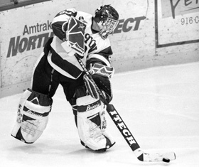 This year, That Tapp Kid's seeing more action, which makes me very happy. He's a darn good goalie. Then there's freshman Rick DiPietro. He isn't half bad, either.