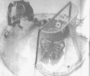 #12: Gillis NICKY ;~) Gillis also drives a Jeep, but it's red and he can park it. However, his Jeep is referred to as "the Sexmobile." And we swear the boy only exists in three places: his room, his car, and the arena. He teleports to get from one to another, because those are the only three places he has been seen. (Well, we haven't seen him in his room, but you figure he's gotta sleep somewhere...) This little theory came from the dememted imagination of Tumbleweed, who was "dragged, kicking and screaming, into the world of BU hockey," according to her. He's also the 1998 Beanpot hero, scoring the winning goal in overtime against Harvard.