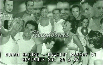 Okay, I'm not meant to be here but I've just made an ad-type pic for HN on Neighbours with the announced dates on it. I made two - a coloured one and a green one. They're both the same but, for the moment, I'm posting the green one 'cos I think it looks a little less chaotic. Here's both the pics anyway if you want a squiz: