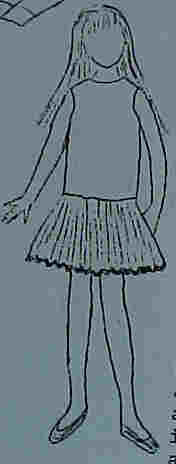 This first is "Sweet Pleats" —a dropped-waist shift with pleated ruffling skirt, lovely simplicity in fancy fabrics, reprinted from MFB archives (1971).