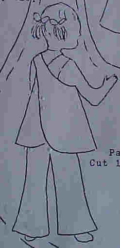 The second bonus pattern is called "Coolly Culottes," "A Two-In-One-Pattern" which makes up in two lengths. It is accessorized with a matching scarf. Reprinted from 1971.