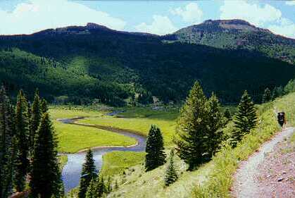 We went from the La Manga Trailhead, about 25 miles from both Antonito, CO and Chama, NM on CO 17. In retrospect, I probably should have done some training for this hike, but since ski season ended, the only thing I've done is watch my rear end get wider. Hike was about 7 miles to the base of the second meadow, and about 1800 ft in elevation gain. Total vertical was certainly more than that as you "give back" probably 400-500 ft during the hike. Second meadow sits somewhere between 10,200 and 10,500 ft. We were both hurting the evening we got there (Tim because of the elevation and me because I'm lazy), but the scenery (and some vitamin "I") helped to relieve the pain.