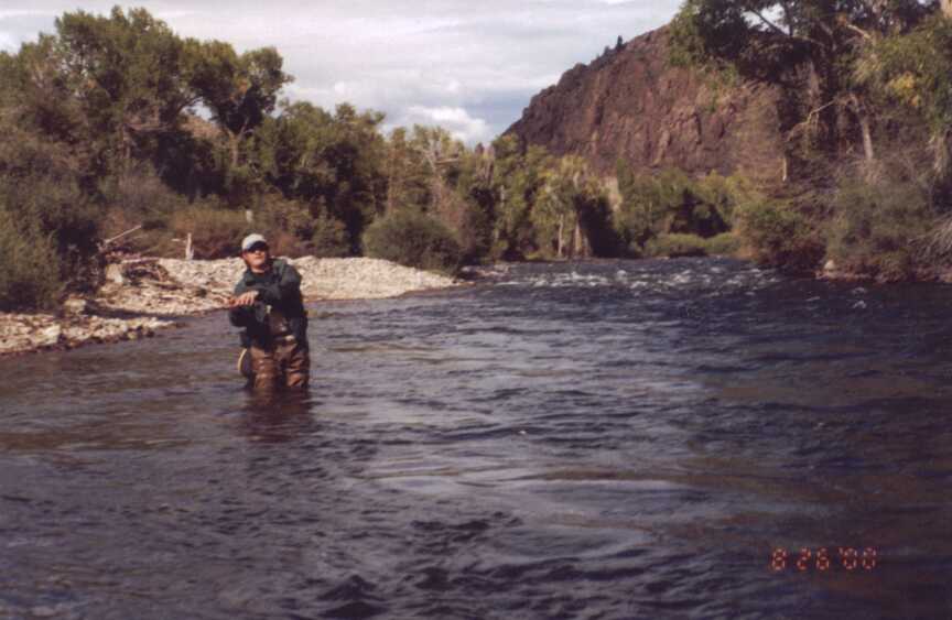 Here's Frank fishing the Gunnison River a couple miles downstream from Almont. Frank's hooked into a nice sized illegal Kokanee that we were certainly not illegally fishing for. He eventually lost this illegal fish on purpose so that I wouldn't have evidence of his illegal fishing actions