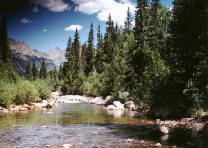 Vallecitos Creek heads high in the Needle Mountains of southwest Colorado near the continental divide. The stream gains strength with the addition of several feeder creeks, and then cuts into a deep valley. The term Vallecitos refers to the narrow nature of the river valley.