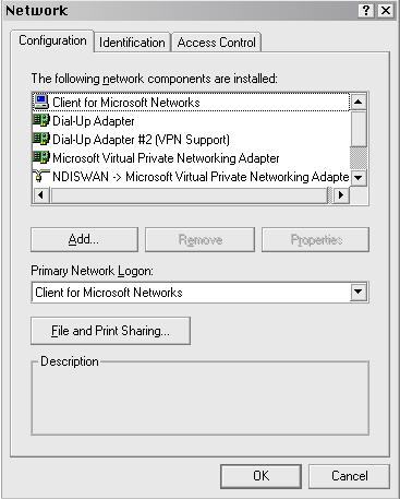 2. Click Add. 3. Click Client, and then click Add. 4. Follow the instructions on the screen. Notes You can also open the Network dialog box by clicking Start, pointing to Settings, clicking Control Panel, and then double-clicking Network. With the Microsoft Client for NetWare Networks that is included in Windows 98, you can connect to Novell NetWare servers. To install this client, follow steps 1-3, and then in Manufacturers, click Microsoft, and in Network Clients, click Client for NetWare Networks. Two versions of the Novell NetWare workstation shell are also available. To install one of these, follow steps 1-3, and then in Manufacturers, click Novell, and in Network Clients, click the version you want. |