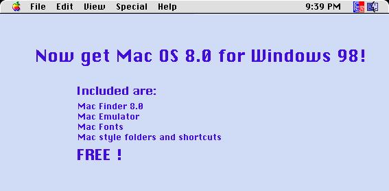 Win) WinMac98, gives you the Mac OS 8 apple taskbar,