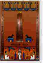 From the House of Inspiration, we have the Obelisk. The central imagery is that of a pink granite obelisk, representing the one found at Karnak Temple in Luxor, supposedly the tallest obelisk in Egypt. It was erected by Queen Hatshepsut to worship the God Amun, whom she claimed to be her father. There is no indication what the two animals seated on either side of the obelisk are, and I am not familiar enough with Egyptian imagery to make a guess! In a reading, this card can indicate success through questionable means, that is about to crumble away. (Note: In the book, each card is presented by House, title, description, explanation of the card illustration, upright and reversed meanings in a reading.)