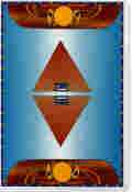 The deck and accompanying book come in a sleeve-style box, with the cards in a flip-style box that opens the long way, making them easy to get in and out. The cards themselves are approximately 3 1/4" by 4 5/8", on quality, glossy card stock. There are three extra cards with the deck: one card carries definitions for the five Houses; one card carries a graphic of the Pyramid Spread, along with position definitions; and one card carries instructions for reading.