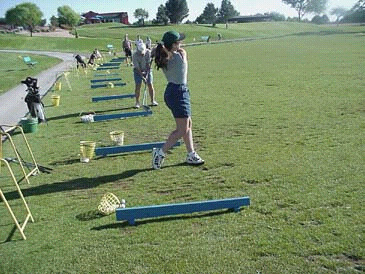 Who the HELL thought I'd take up GOLF?!?! When I first met Sharon, she was obsessed with the game, so I thought to myself 'I'm gonna see what this is all about'. My first game ever playing against Sharon, she beat me by 1 point. Now grant she's been playing for 2-3 years! Our second game (which was the same day), well *flexing* I kicked her butt! And I swung my first club in April 2000, and my first game was on my birthday - July 18, 2000. Could I be the next Nancy Lopez?? hehehe