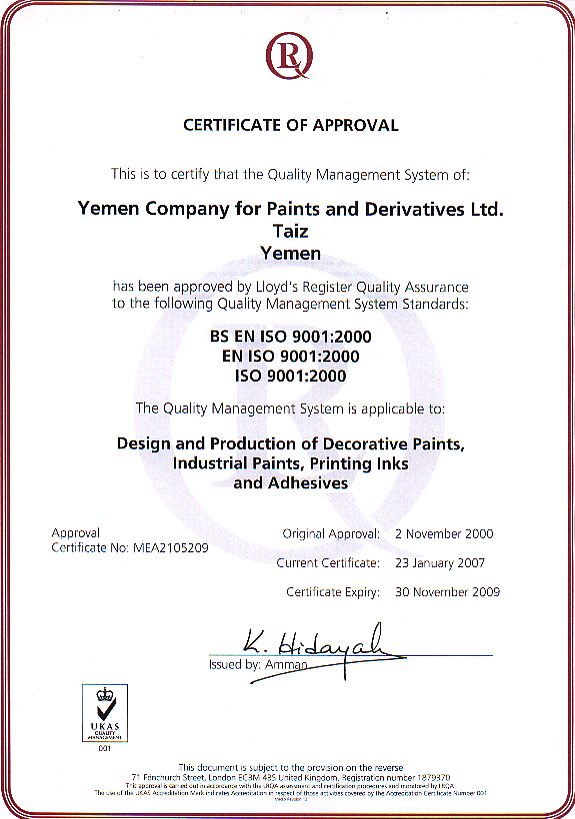 ISO 9001 is a standard that focuses on 20 aspects of a quality program for companies that design, produce, install, and service products. These aspects include management responsibility, quality system documentation, purchasing, product design, inspection, training, and corrective action. It is the most comprehensive and difficult standard to attain. About us ||| Company's Profile ||| (CROWN) ||| (ATLAS) ||| (Globe) ||| Contact us ||| Branches ||| Links |
