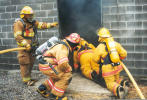 When smoke puffs out of a door it 's called a back draft. They have to be really careful in fires. They save people in fires. It is hard to fight fires. They wear a lot of bunker gear.
