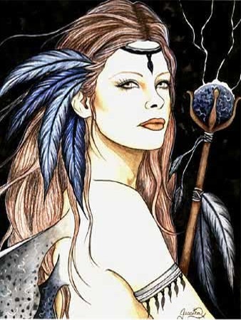 Wearing : a green chasuble, an Amulet of Cymoc, a white robe, an amulet of nul, a silver pentagram pendant, an amethyst amulet, an octisword holy symbol, a heraldic tabard of ebony-dyed satin, a moon-motifed elfsteel bellychain, a pair of dainty platinum earrings, a water crown, a pair of lacy silk scanties, a Cloak of Mist, a mauve pouch(closed), an enchanted hide armour, a heavy lizardskin pack (closed), a massive sword scabbard (closed), a diamond and platinum bracelet, a amethyst ring and a pair of Boots of the Glade.