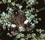 De voorvleugels zijn zwartbruin tot zwart met onduidelijke tekeningen.