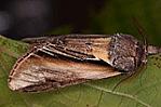 maar deze heeft een wigvormige, witte vlek aan de binnenrand van de voorvleugel,