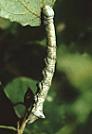 De tot 40 mm lange rups heeft een groen lijf met een brede gele lijn