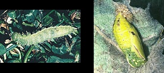 De poppen bevinden zich van mei-juli, hangend in lage vegetatie.