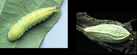 De jonge rups is bleek geelgroen gekleurd.