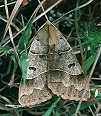 De volwassen rups is bruinachtig grijs met zwakke bandachtige rugtekening