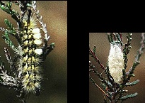 Hij verpopt in een geel spinsel op de waardplant.