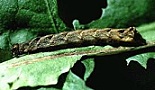 De rups, te vinden van mei tot oktober, wordt weinig gezien.