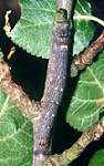 Een rups zittend tegen een takje is bijna niet te ontdekken.