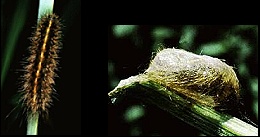 De rups is te vinden vanaf september tot april en in juni en juli.