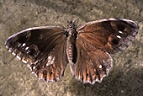 De onderkant van de voorvleugels is bruin