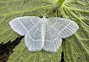 Het is een witgroene vlinder met rechte dwarslijnen op de voorvleugel.